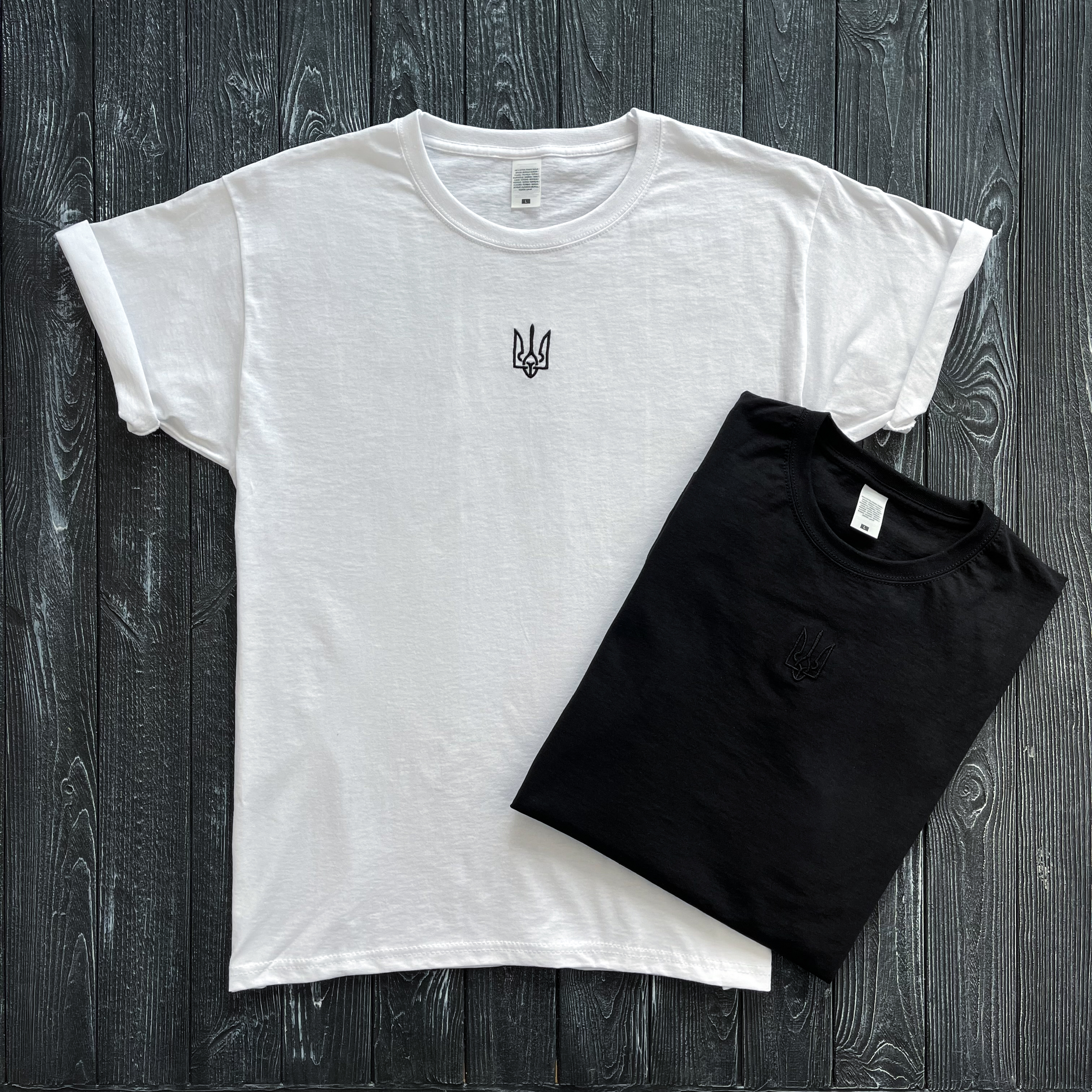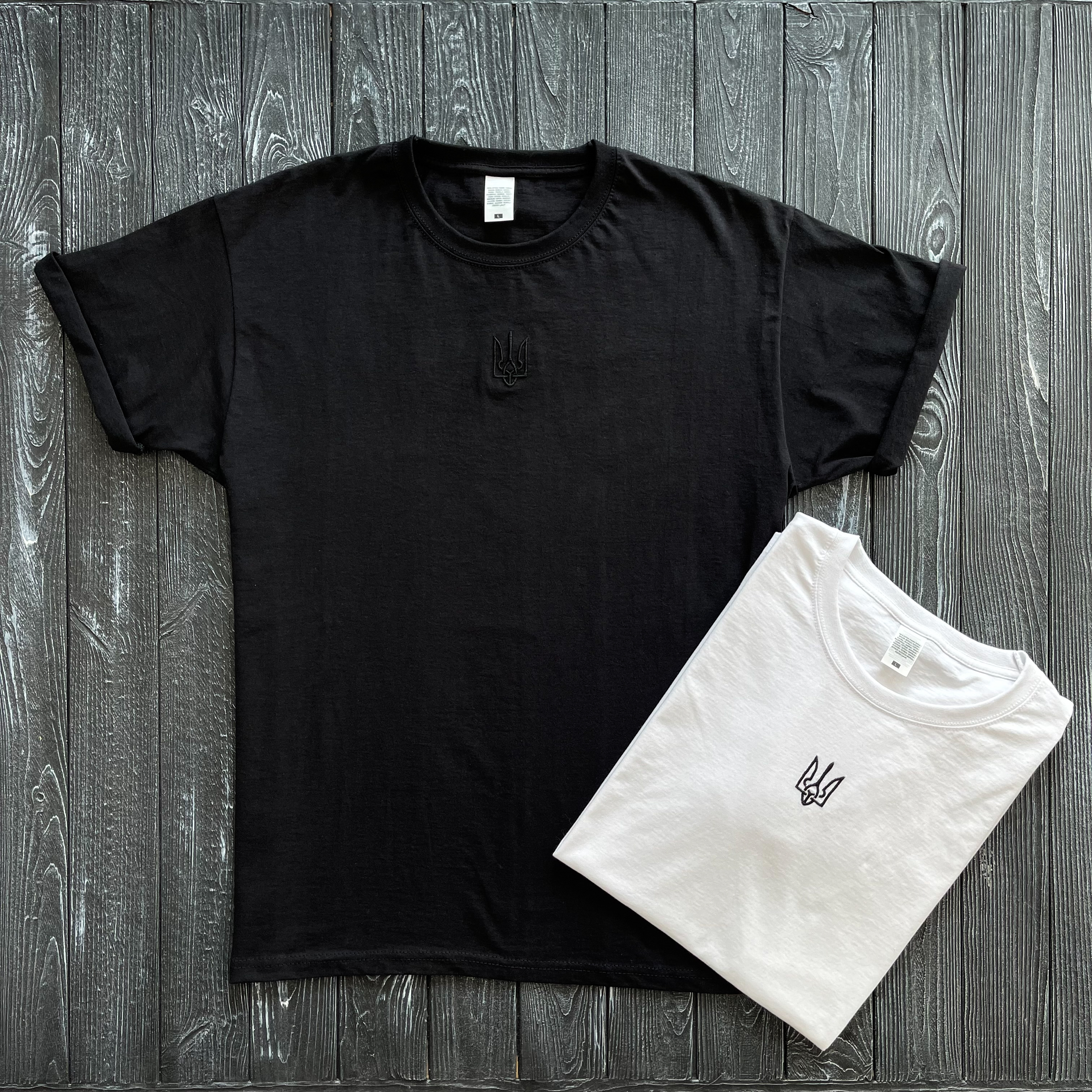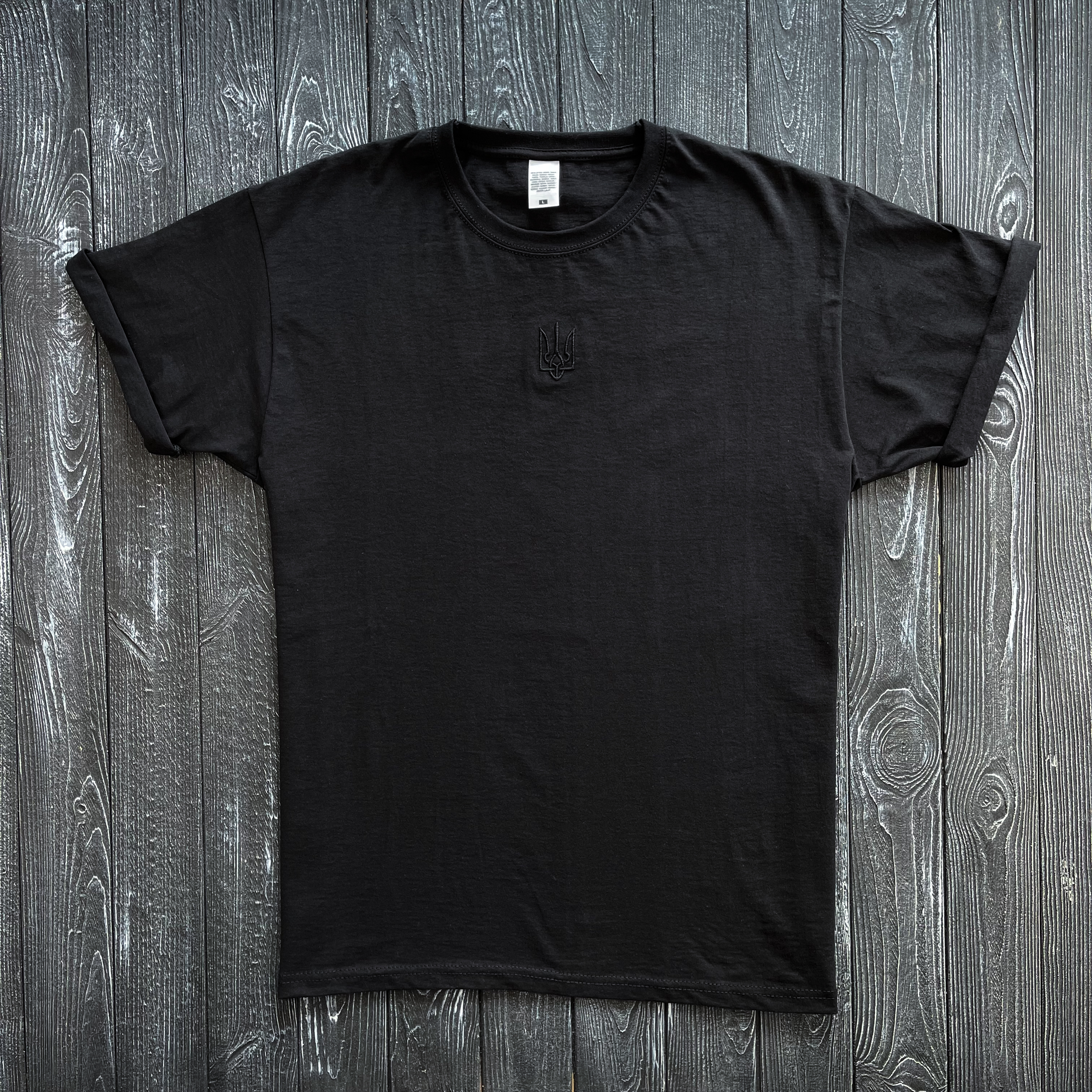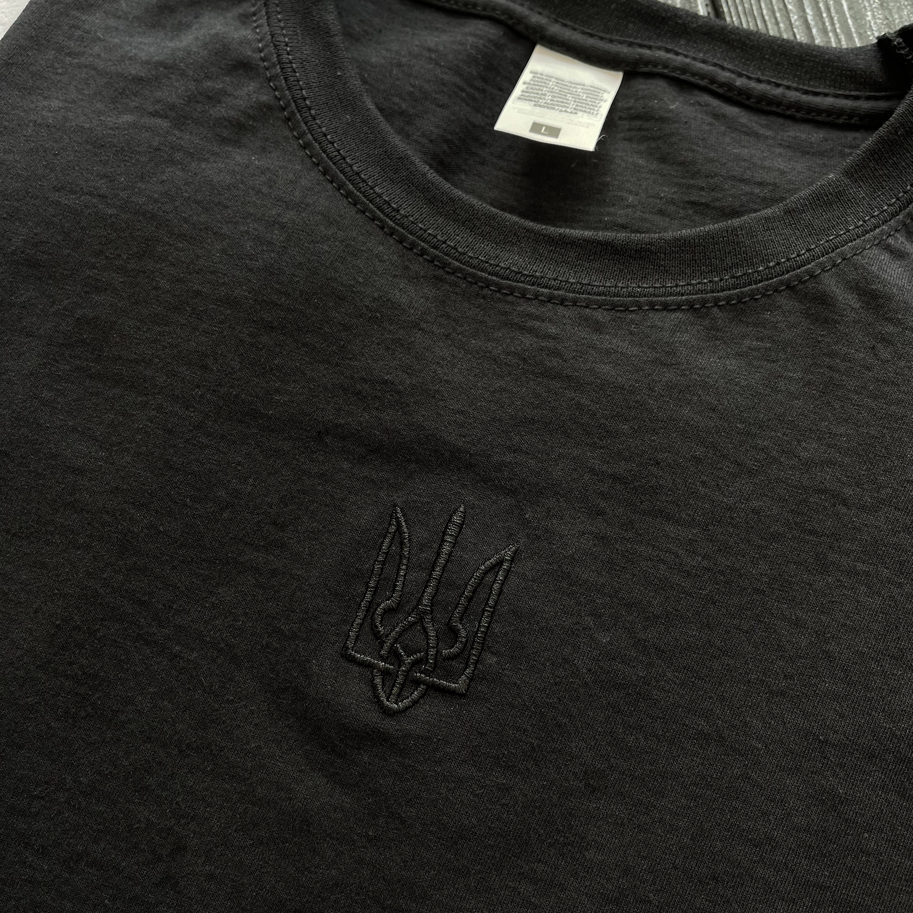 Чоловіча чорна футболка з вишитим тризубом, як в Зеленського