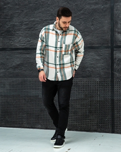 Чоловіча байкова сорочка біло-зелена