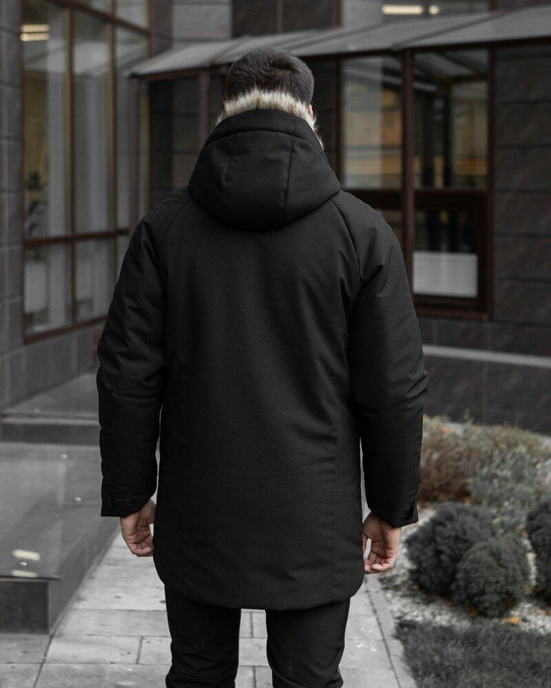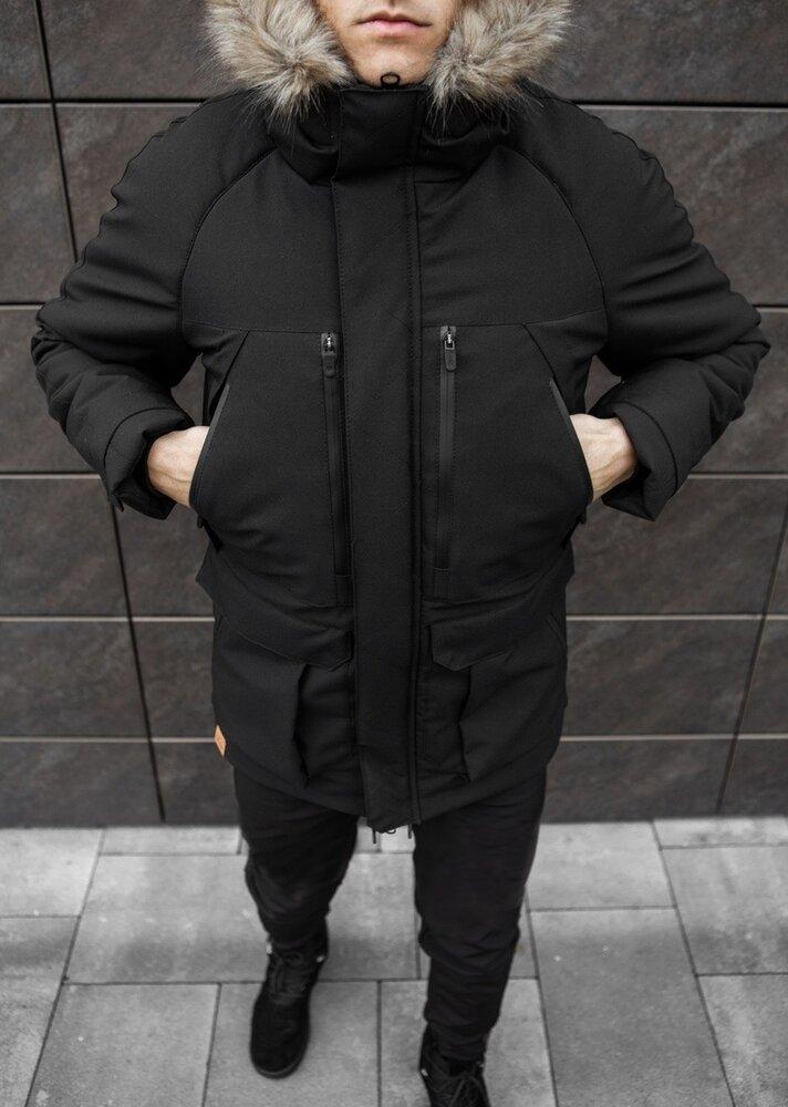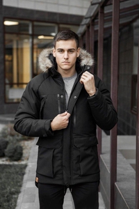 Чоловіча парка “Seniora udacha” поєднала в собі всі елементи властиві вуличній моді: великі накладні кишені на кнопках, нагрудні кишені для зручного положення рук, подовжений крій та об'ємний капюшон для захисту від вітру та опадів.