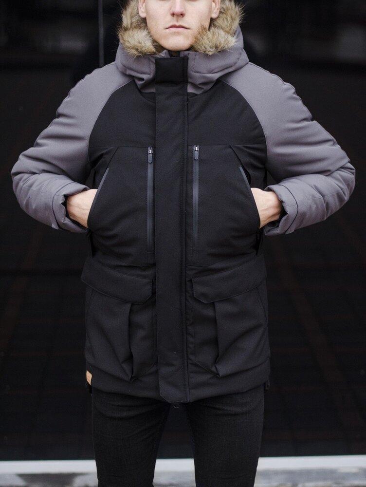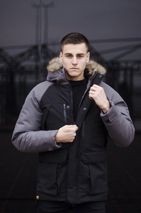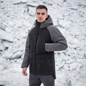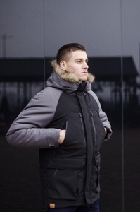 Чоловіча парка “Seniora udacha” поєднала в собі всі елементи властиві вуличній моді: великі накладні кишені на кнопках, нагрудні кишені для зручного положення рук, подовжений крій та об'ємний капюшон для захисту від вітру та опадів.