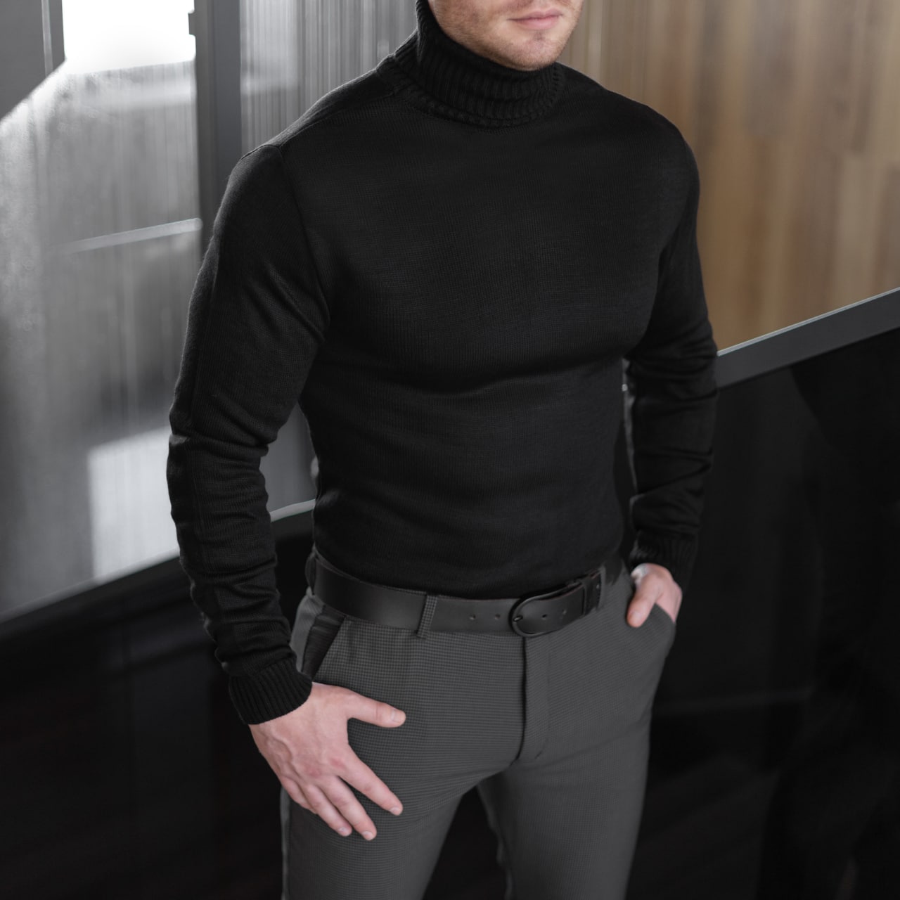 Відмінний чоловічий светр-гольф.