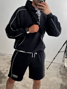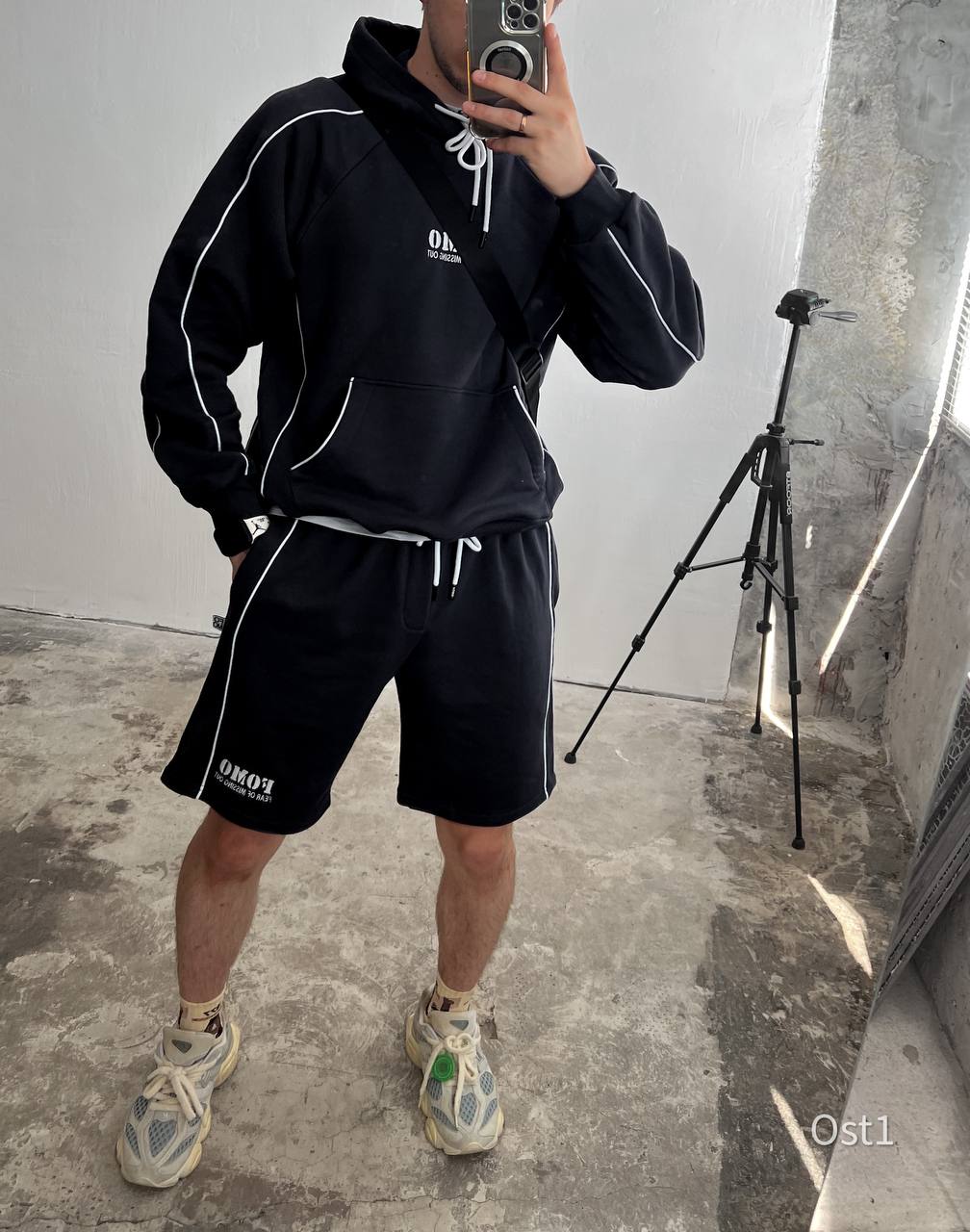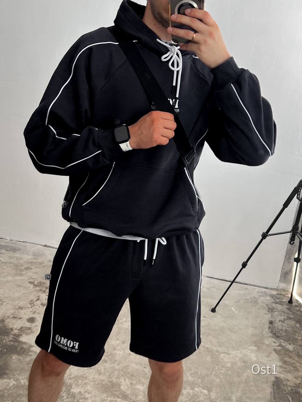 Чоловічий костюм з вишивкою худі + шорти чорний