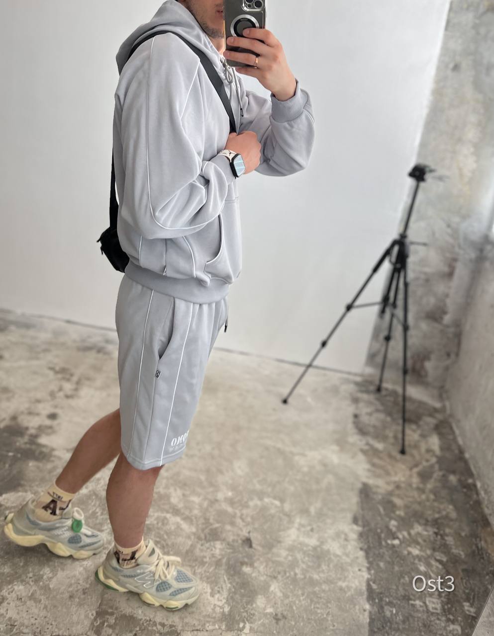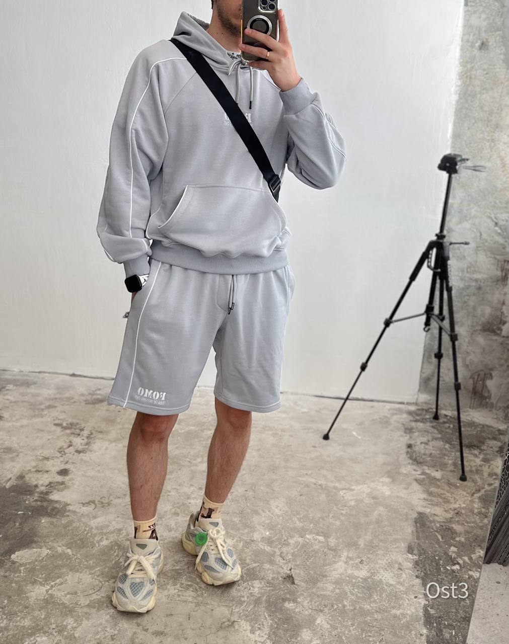 Чоловічий костюм з вишивкою худі + шорти сірий
