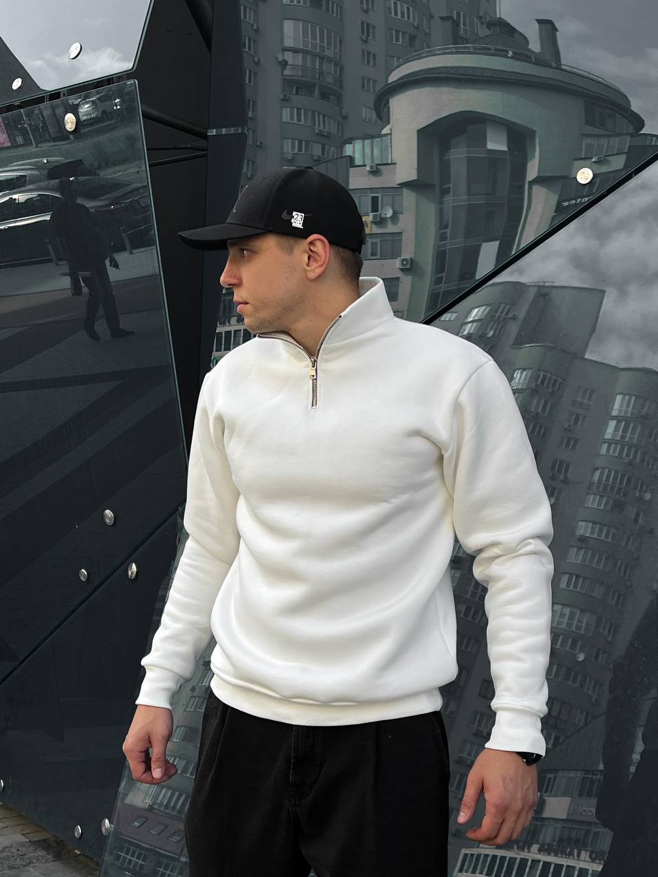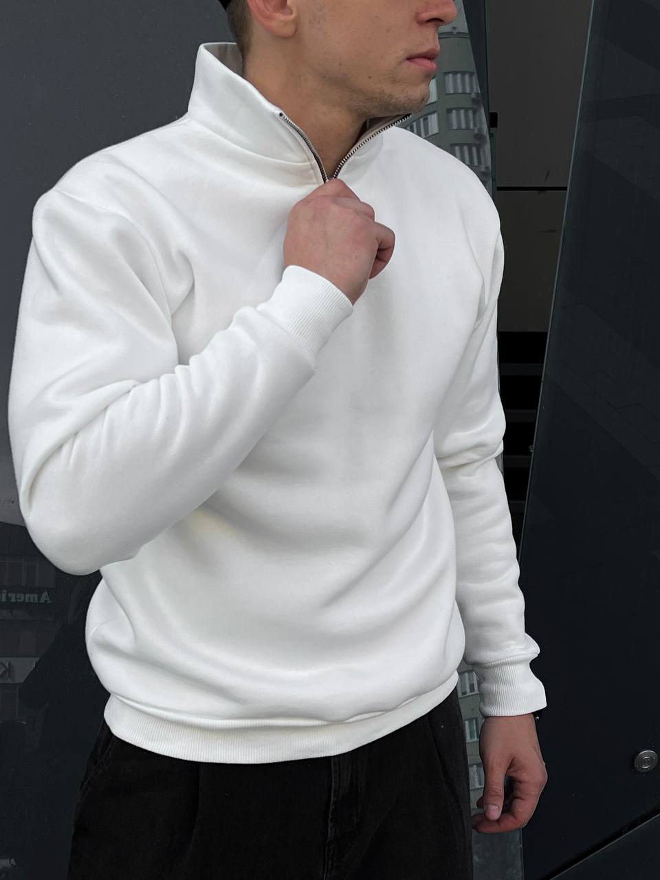 Світшот на блискавці білий, утеплений джемпер
