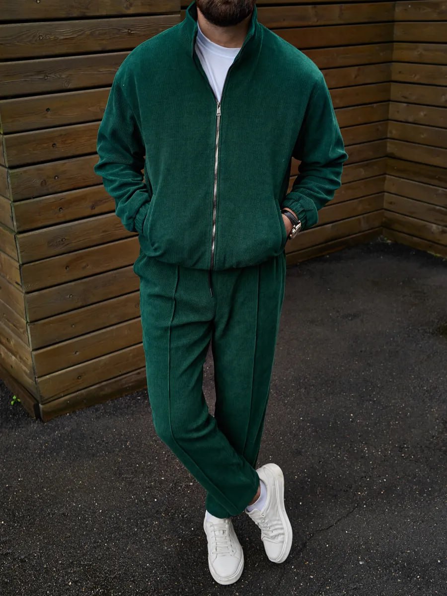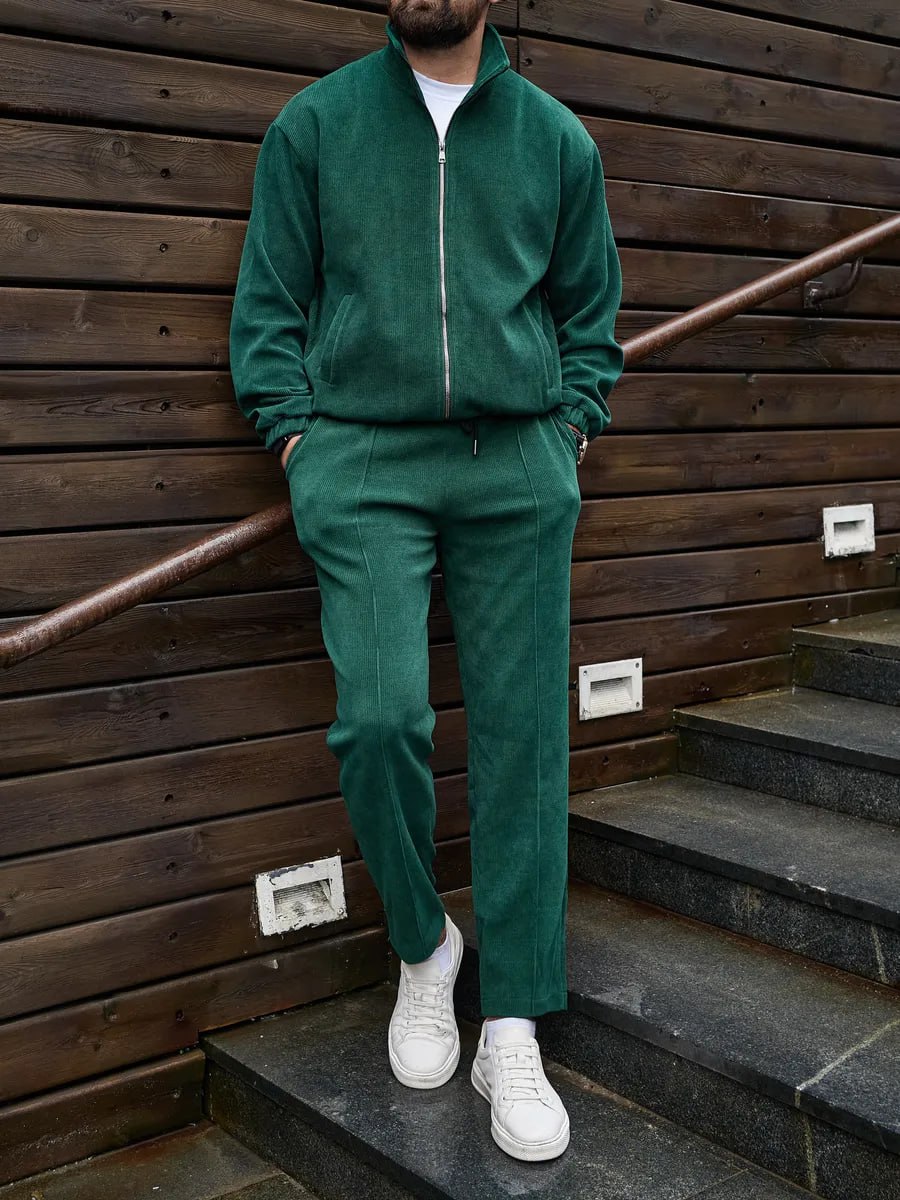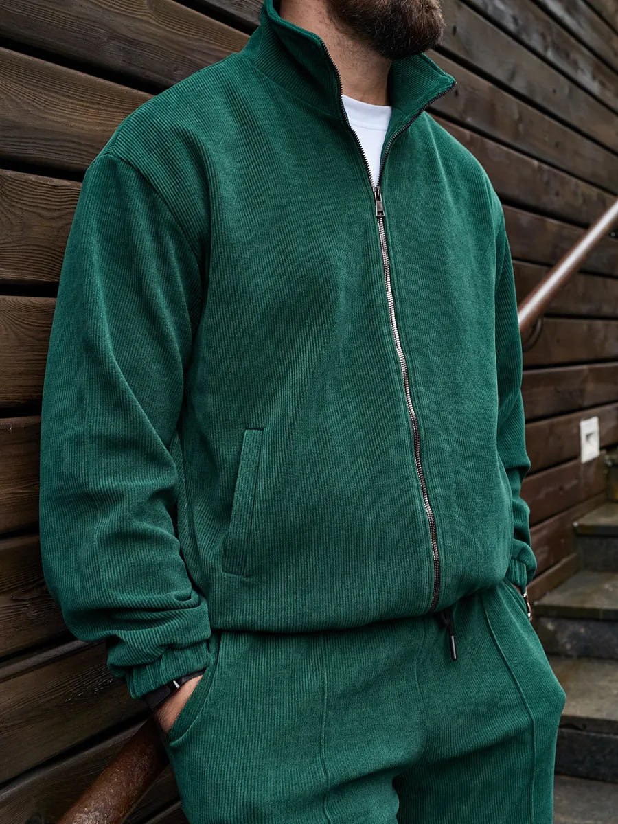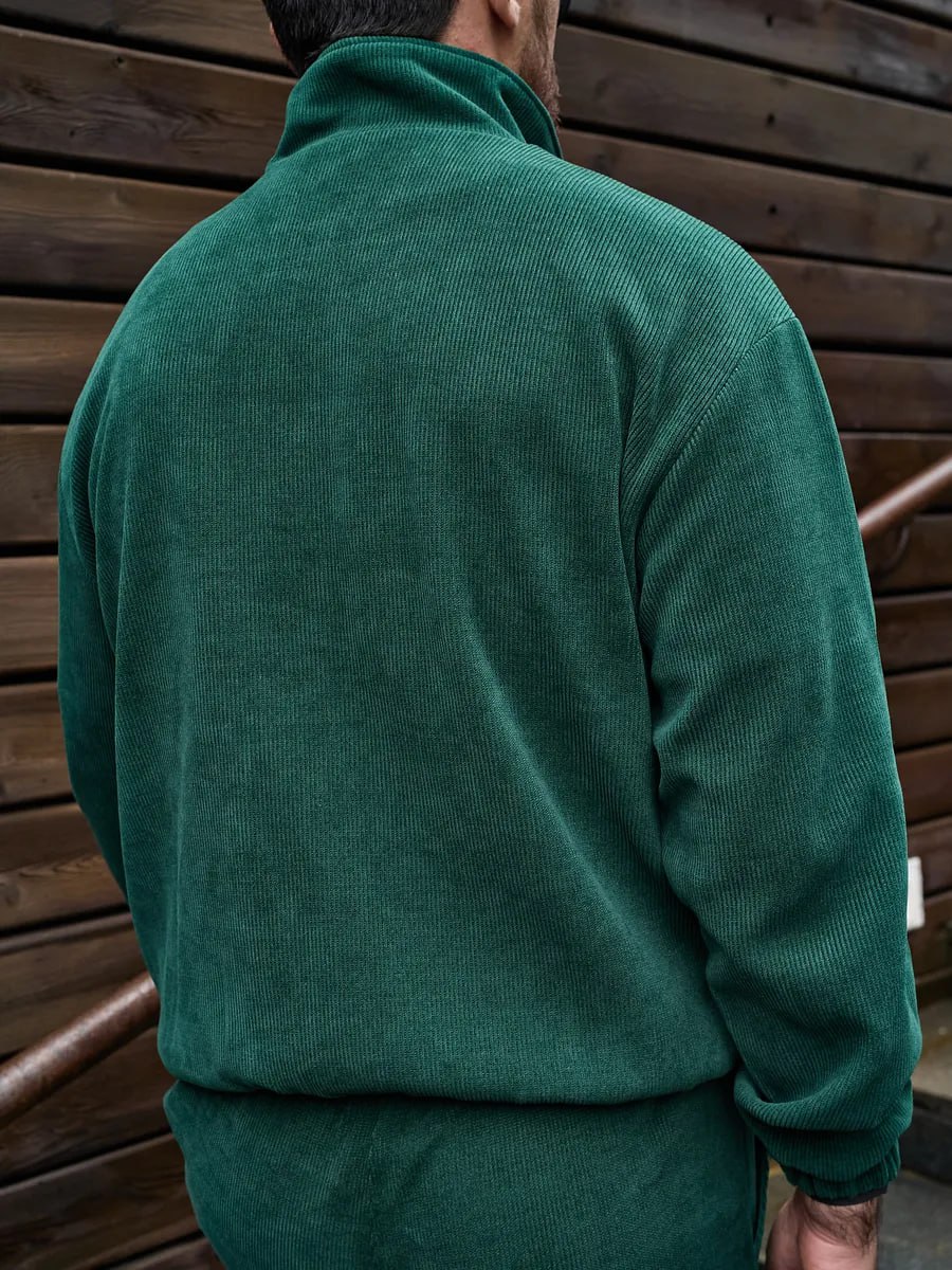 Чоловічий оверсайз вельветовий костюм темно-зелений