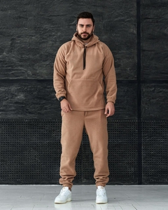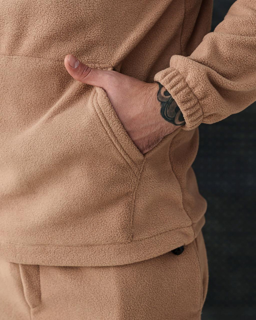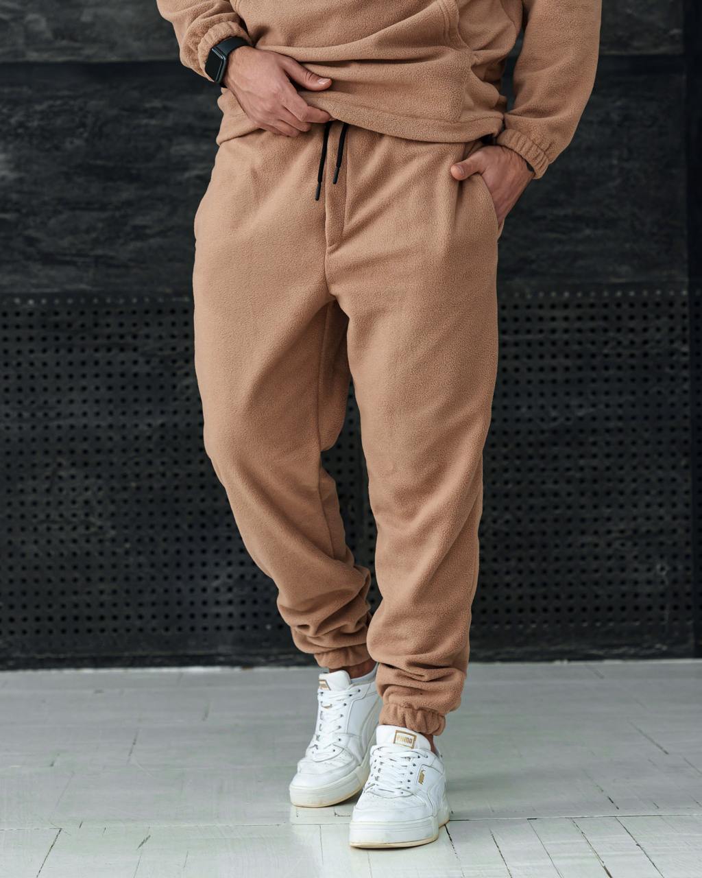 Плюшевий оверсайз костюм з капюшоном бежевий