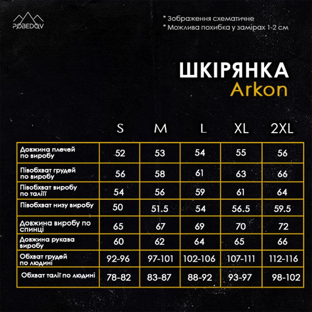 Куртка Arkon - це сучасний мінімалізм із характером. Arkon - це куртка з еко-шкіри на замші, яка поєднує функціональність і виразний дизайн. М’яка на дотик тканина, прямий крій і приспущена лінія плеча створюють сучасний силует. Відкладний комір і декоративна фігурна строчка додають стильних акцентів, а продумана фурнітура робить модель практичною у використанні. Матеріал: еко-шкіра на замші (100% поліестер) - це сучасна альтернатива класичній шкірі. Крій: прямий, із приспущеним плечем. Комір: відкладний, з основної тканини. Манжети: також із основної тканини, витриманий мінімалізм. Підкладка - для комфорту та довговічності. Застібка: на кнопках. Кишені: 2 бокові + 2 функціональні нагрудні. Декор: фігурна строчка на грудях. Сезон: весна / осінь. Догляд: - протирати вологою м’якою тканиною; - уникати машинного прання, відбілювачів та сушіння в сушарці; - сушити природним способом, подалі від батарей та прямих сонячних променів; - зберігати на плечиках.