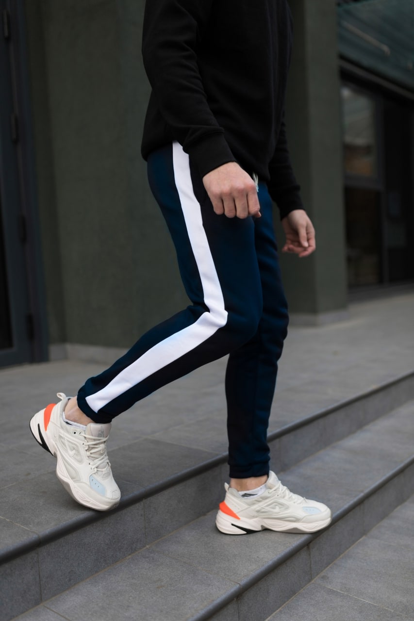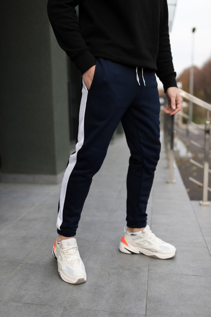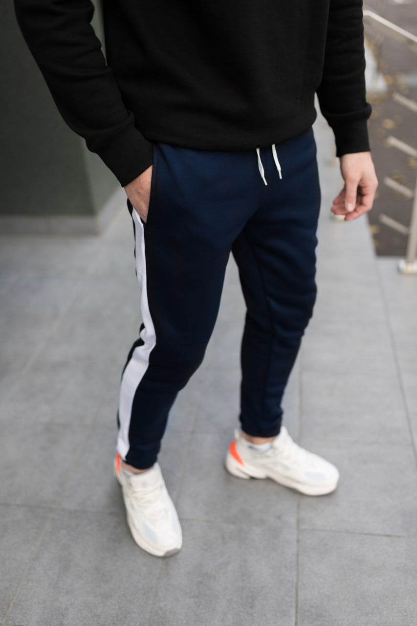 Теплі штани темно-сині білий лампас