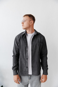 Чоловіча лляна сорочка з довгим рукавом чорна