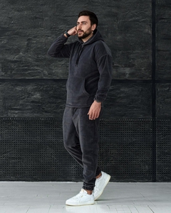 Плюшевий оверсайз костюм з капюшоном темно-сірий
