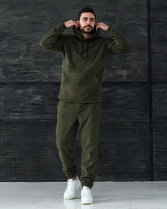 Чоловічий оверсайз вельветовий костюм темно-зелений